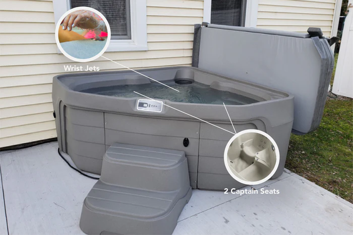 The triangular shape of the Tristar makes it perfect for corners and tight spaces. It’s large enough to fit three adults comfortably (but perfect for just the two of you), and the 17 strategically placed jets, including wrist jets, will leave you feeling rejuvenated and refreshed.