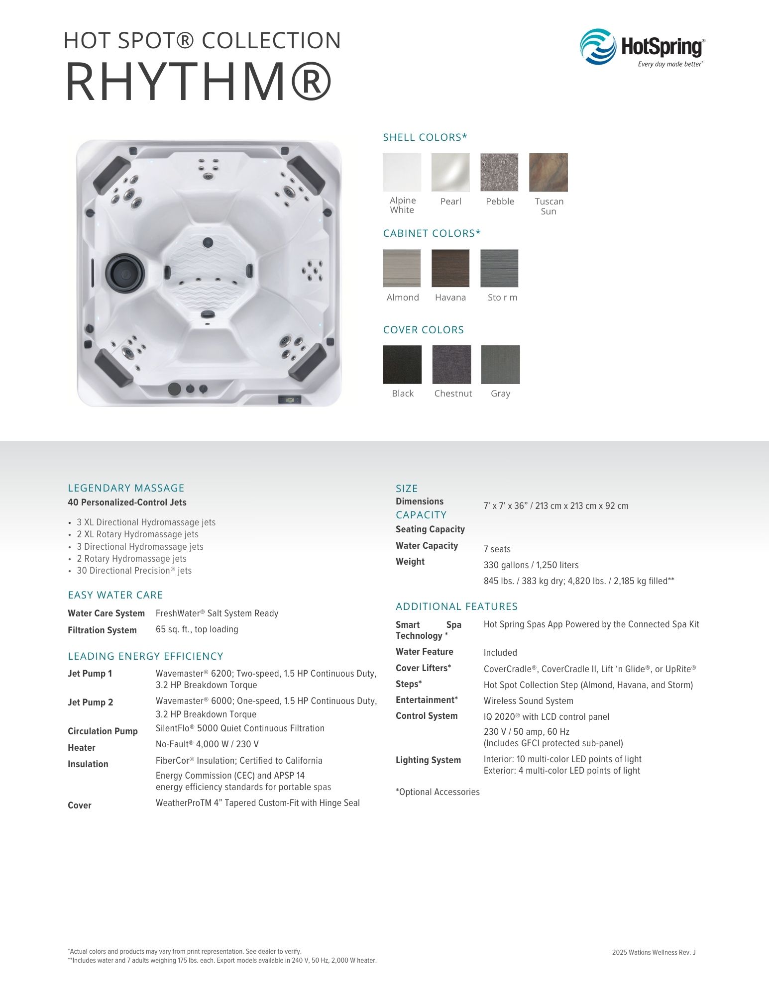 Step into the Rhythm, the largest model in the value-packed Hot Spot Collection, and discover the ultimate gathering spot for friends and family. With seven generous seats, this spa offers ample space for everyone to unwind and enjoy together. Perfect for creating memorable moments, the Rhythm combines spacious comfort with exceptional value, making relaxation a shared experience.